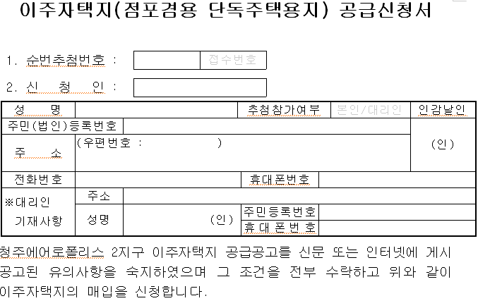 청주에어로폴리스 2지구 이주자택지 공급대상자로 선정통보된 자