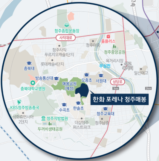 청주시 서원구 모충동 매봉공원 "한화 포레나 청주매봉" 분양