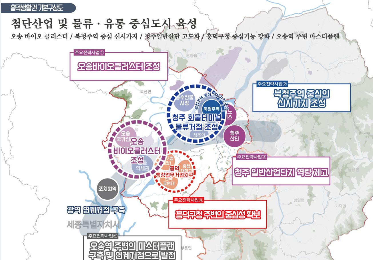 - 오송〜옥산〜테크노폴리스〜오창〜에어폴리스를 연결하는 첨단산업 벨트축 구축